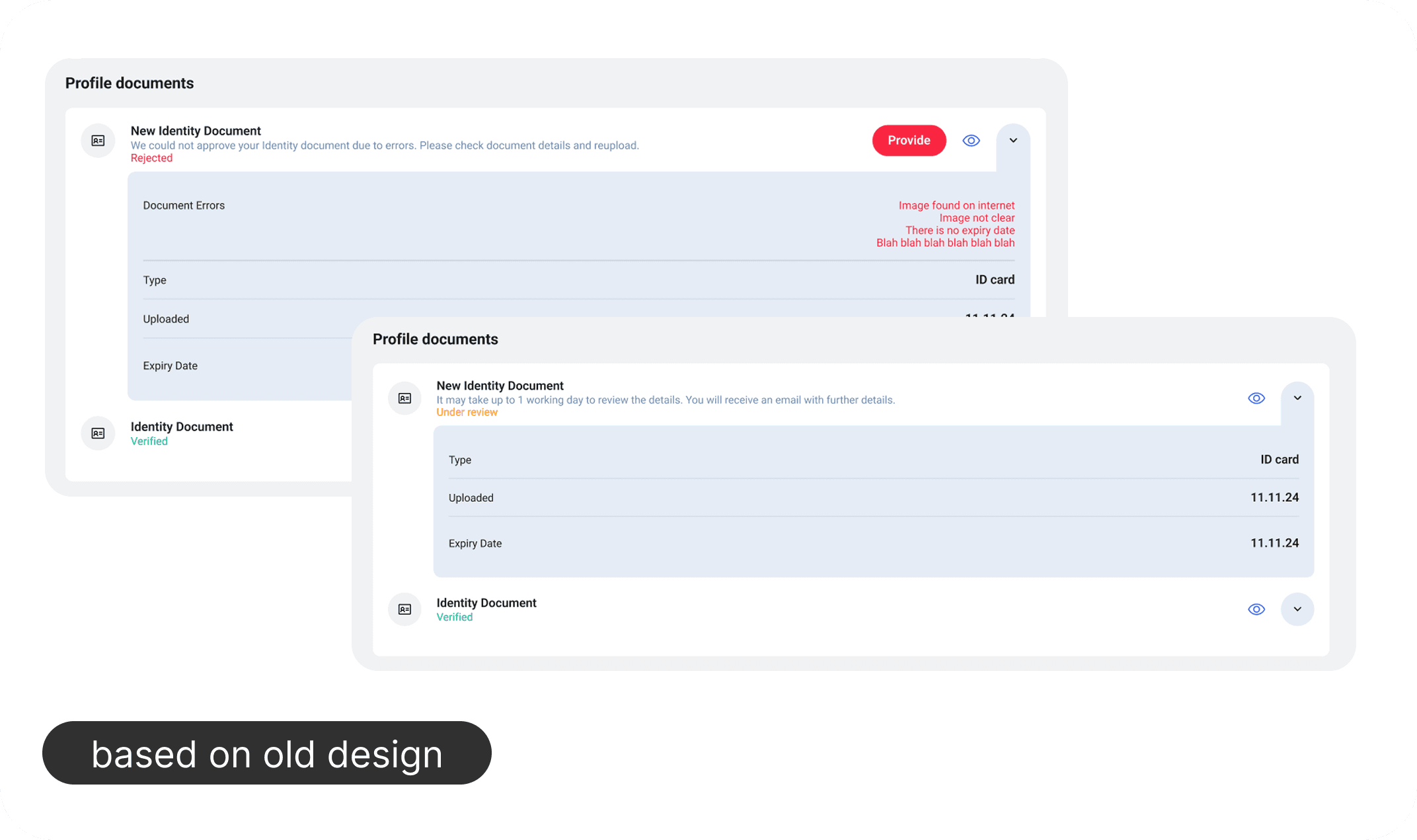Changes rolled out starting with highest-revenue brands. For brands with KYC in a popup — a legacy pattern that couldn’t be changed without a full portal redesign — a side panel approach was introduced: more space than a popup, without breaking the existing layout.