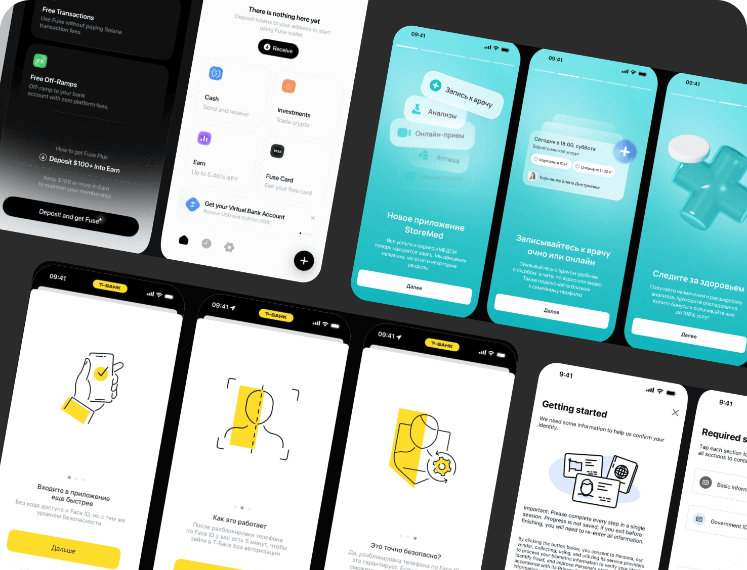 Reviewed KYC flows across: Gosuslugi (benchmark for document upload illustration — shows exactly what an acceptable photo looks like), Revolut, AvaTrade, NAGA.