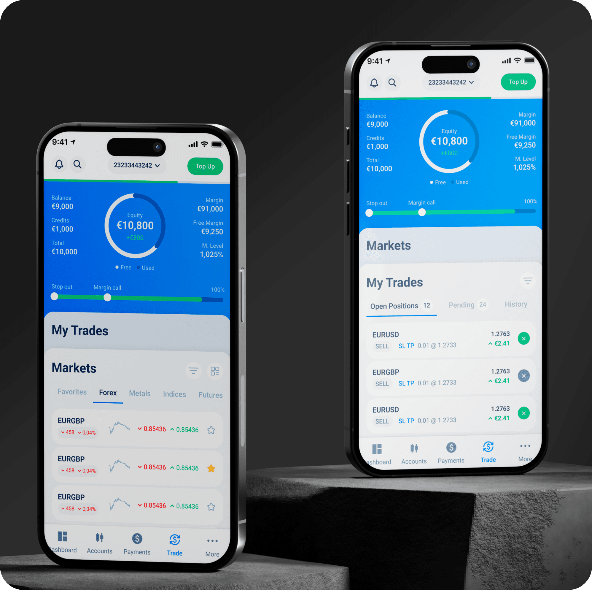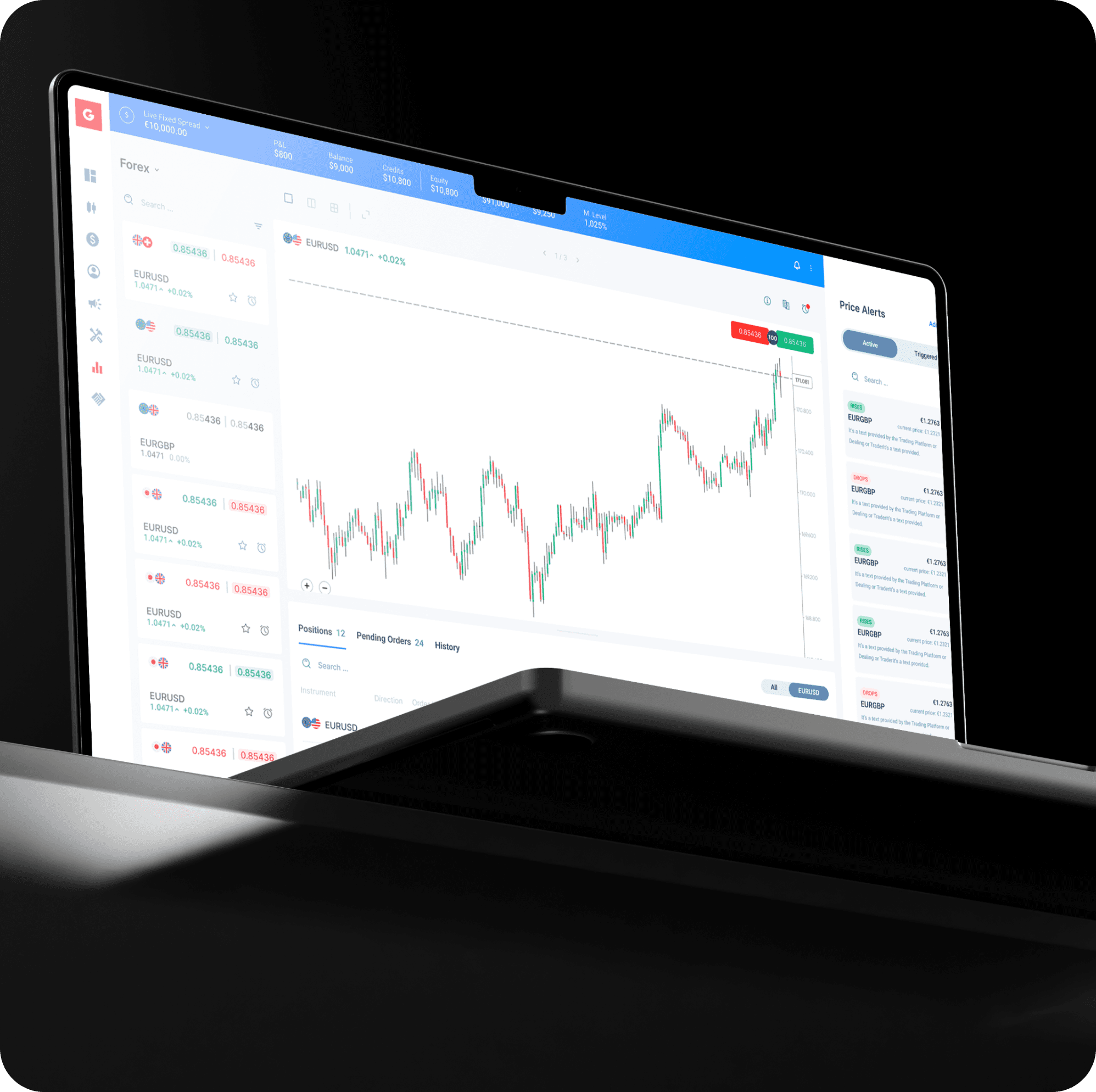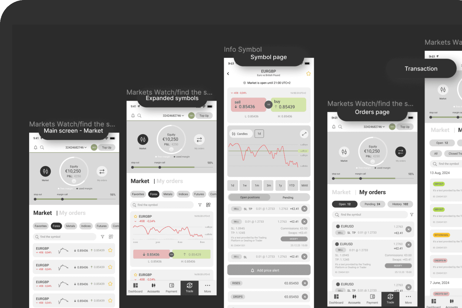 After launch, I began sketching a unified design direction that would bring the trading interface, main app, and client portal into visual consistency. This work was approved by internal stakeholders and became the starting point for the company’s broader product redesign initiative.